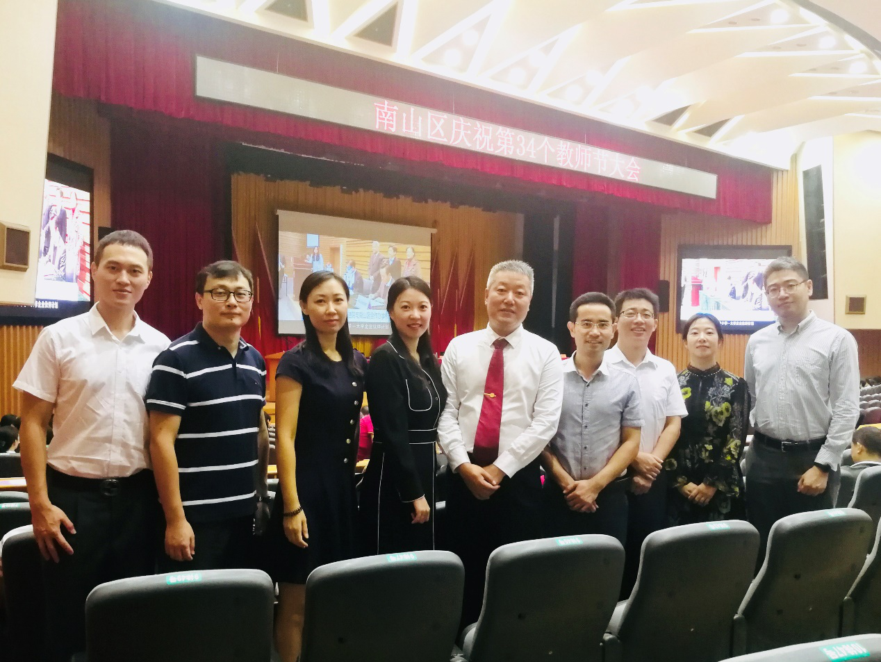 9月5日上午,南山区举行庆祝第34届教师节大会,为在教育工作岗位上表现突出、做出贡献的教职工代表进行表彰和颁奖。南山区委书记王强等领导、及南山区各局各街道主要负责人、区教育系统校园长、先进教师代表等共700多人参加本次大会。区政协副主席、教育局局长刘根平宣读了表彰决定。本届大会首设“科学传播贡献奖”,首批5位获奖者均来自中国科研实验室深圳先进技术研究院“博士课堂”团队。