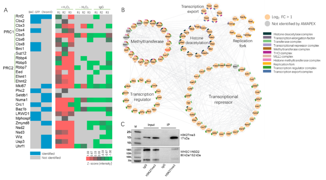 图2 利用AMAPEX方法鉴定组蛋白H3K27me3临近蛋白质组