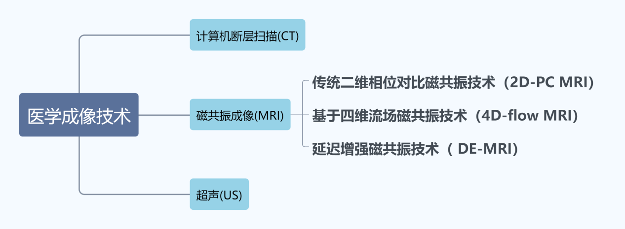 近年来基于四维流场磁共振技术(4D-flow MRI)技术的问世,使得对于在体大血管及与心腔内血液流体力特性的学研究有了质的飞跃。与传统的二维相位对比磁共振技术(2D-PC MRI)相比,4D-flow MRI顺利获得测量三个方向的流速编码和单向的流动补偿编码来进行四点扫描,从而获取图像信息。在三个空间维度中的每一个具有速度信息的时间分辨3D成像已经证明了心脏内流量定量的可靠性和准确性。相比于2D-PC MRI,4D-flow MRI 可以对流体体积定量,且有更好的可重复性,多种流体参数据,可以更好的进行回顾性分析。现在4D-flow MRI可视化方法已经有效地识别了诸如主动脉,颈动脉、脑血管患者左心房内的各种管腔中的血流异常变化,精确的计算出血管及心腔内不同区域流场的速度,流体力学方向,以及局部血管壁所承受的血流剪切应力。