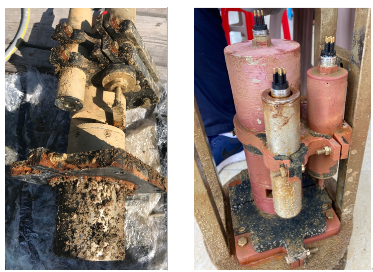 图2:CPT涂料处理(右)与未处理(左)的海洋原位传感器外壳生物附着情况