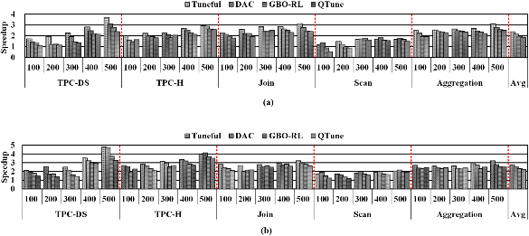 随着Spark SQL框架的广泛使用,Spark SQL的配置参数优化始终是一个难以解决的问题。现有的机器学习优化方法由于优化时间成本高、无法很好适应所处理的数据量变化而难以实际应用。该项研究针对这一难题研究出了低时间成本、能够适应输入数据集大小变化的配置自动优化方法LOCAT,由核心技术组成。第一时间,我们设计了query与配置参数敏感性分析技术在收集训练样本时,从给定工作负载中识别并删除与配置参数不敏感的query其次,对于其余的query,LOCAT顺利获得计算相关系数来识别重要的配置参数,然后应用核主成分分析来降低配置参数搜索维度最后,LOCAT设计了感知数据集大小的贝叶斯优化来搜索最优配置,以便能根据数据集的大小自动优化性能。基于TPC-DS、TPC-HHiBench测试基准的实验表明,分别在8台高性能x86服务器的集群环境与4台高性能ARM服务器的集群环境下,较当前最先进的自动调优解决方案LOCAT降低优化时间成本9.7倍,而且取得了高达2.8倍的性能提升。