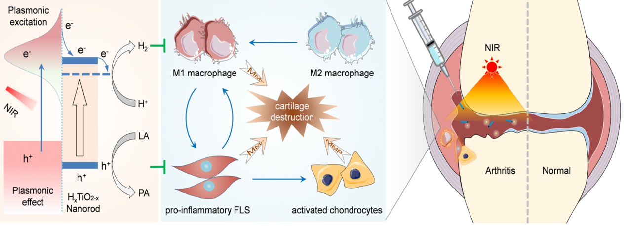 近期,中科院凯发k8国际集成技术研究所神经工程中心李光林研究员团队的唐为副研究员课题组联合上海交通大学氢科学中心何前军教授合作在Science Advances发表题为“NIR-photocatalytic regulation of arthritic synovial microenvironment”的文章。文章上线后就立即收到了Nature Reviews Rheumatology杂志副主编Dr Robert Philips的采访,并为该工作撰写Research highlights,认为催化调控微环境“使风湿性关节炎的无药治疗成为可能”。凯发k8国际唐为副研究员与上海交通大学何前军教授为共同通讯作者。中国科研实验室深圳先进技术研究院、上海交通大学与深圳大学为该论文共同通讯单位.