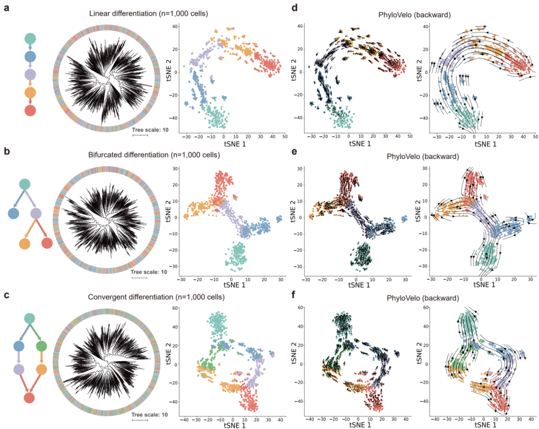 图2 | PhyloVelo准确推断仿真数据中的细胞分化轨迹