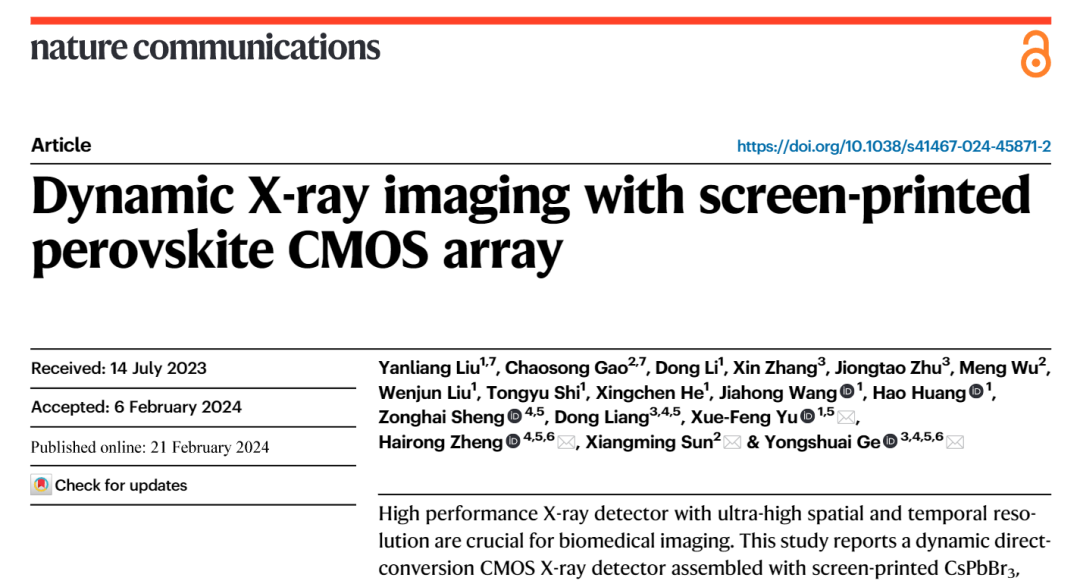 Nature Communications | 丝网印刷钙钛矿CMOS面阵探测器实现高性能动态X射线成像
