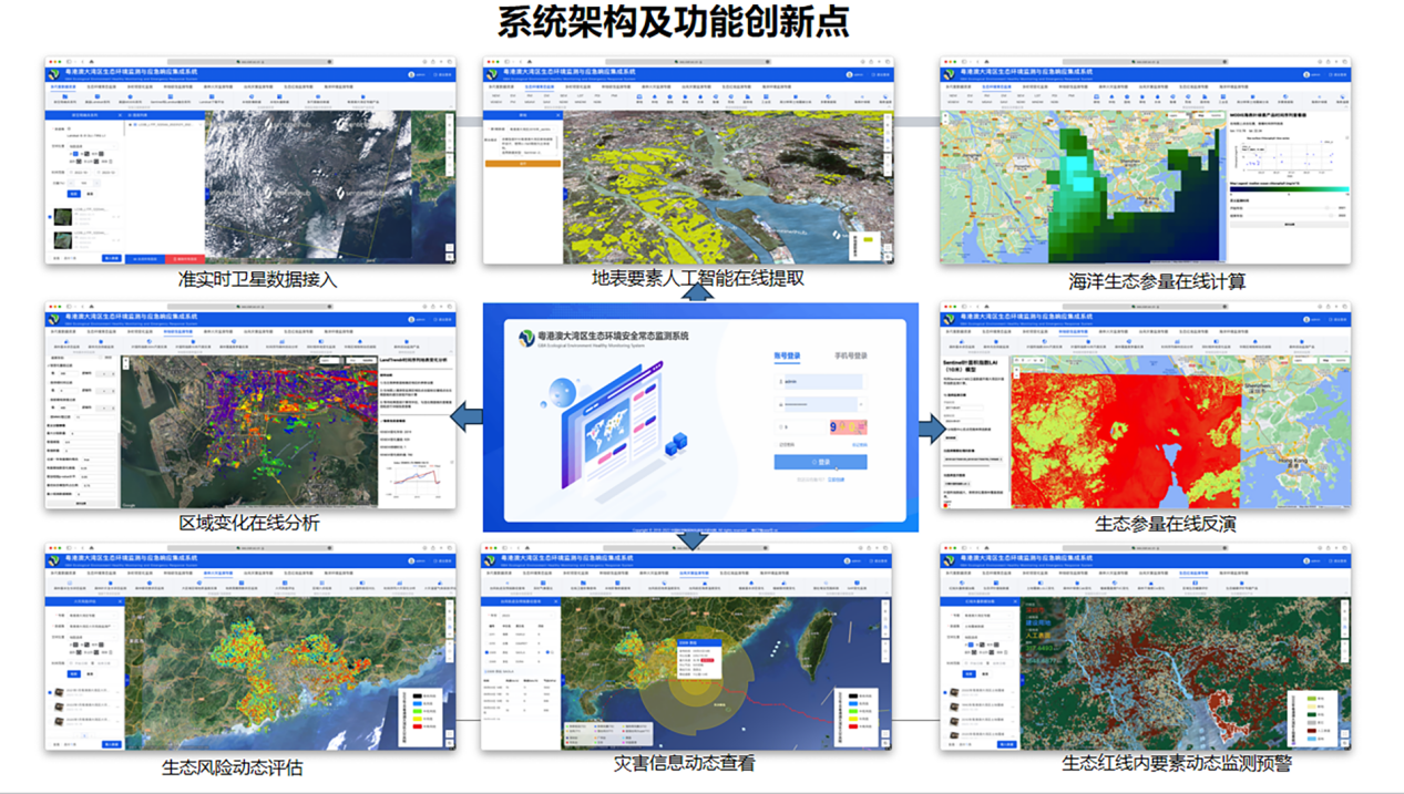 该平台系统由“国家重点研发计划”、“深圳市可持续开展专项”等项目支持搭建,利用分布式存储、云服务检索及在线可视化等技术,集多源数据在线调取、多模型算法实时计算、在线可视化统计分析等功能于一体,能够实现实时卫星数据接入、遥感生态参量在线计算、地表要素人工智能在线提取、区域变化在线分析、生态风险动态评估、灾害信息动态查看以及生态红线内要素动态监测预警等多类别业务应用。研究成果将服务于粤港澳大湾区国土资源变化智能监测及生态环境质量诊断评估,助力于有助于粤港澳大湾区“天-空-地一体化”遥感生态环境监测系统技术体系开展,能够为粤港澳大湾区生态文明建设给予强有力的科技支撑。