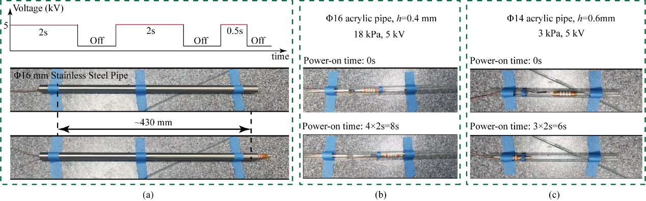 传统电机驱动的管道内爬行机器人解决了大直径管道内巡检需求,但无法满足小直径管道(≤20mm)。以气动或智能材料驱动器为驱动单元是实现管道内爬行机器人微小型化的关键,但面临高效率(爬行速度)、长距离与大变径比(最大适应管径与最小适应管径之比)无法兼得的问题。例如,气动机器人可以实现大变径比,但由于气体/管壁摩擦阻尼,远距离响应迟滞严重。DEA驱动的爬行机器人虽然可以实现1BL/s以上的爬行速度,但变径比仅有1.1,限制了障碍顺利获得能力。