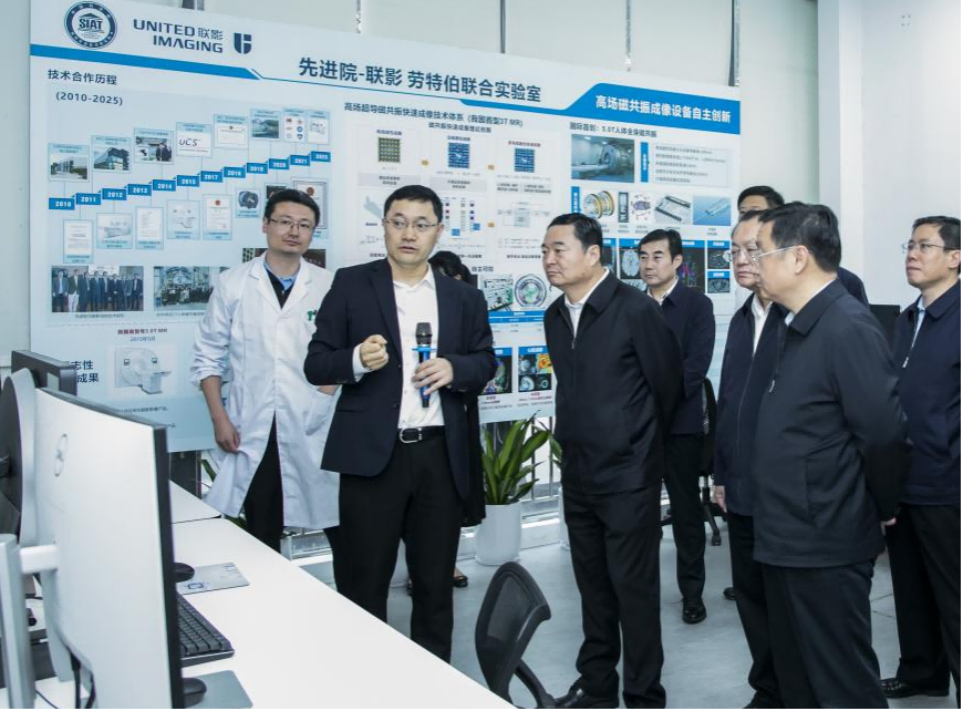 随后,代表团一行实地参观了凯发k8国际展厅及凯发k8国际医学成像科学与技术系统重点实验室,在展厅和实验室详细分析凯发k8国际在医疗设备与科学仪器、生命健康与合成生物、先进电子与能源材料等关键技术上取得的科研进展。