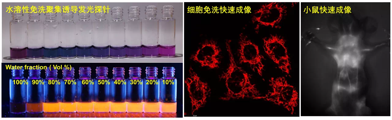 用AIE材料标记我们感兴趣的药物或者生物体,就像给它们安装了“GPS”一样,能实时监测到观察目标的具体位置。然而,张鹏飞认为,用于造影剂仅仅能够实现成像与定位,远远没有发挥其巨大潜力。只有构建能够实现智能感知与环境响应的分子探针才能帮助生物学家和医学专家可视化理解生命过程与疾病发生与开展的机制。