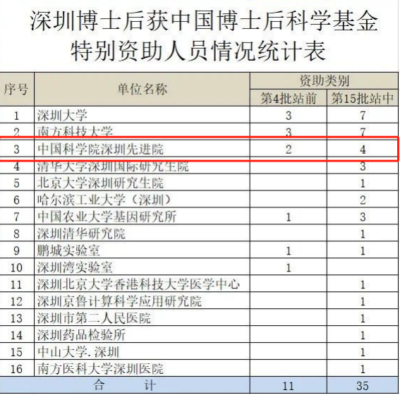 7月14日,中国博士后科学基金会公布了第4批特别资助(站前)和第15批特别资助(站中)获批名单。据第三方组织“青塔”统计,全国资助仅1200名,深圳市共46名博士后获批。其中,中国科研实验室深圳先进技术研究院6名博士后入榜,居全国科研院所排名第一,全国高校第40名。